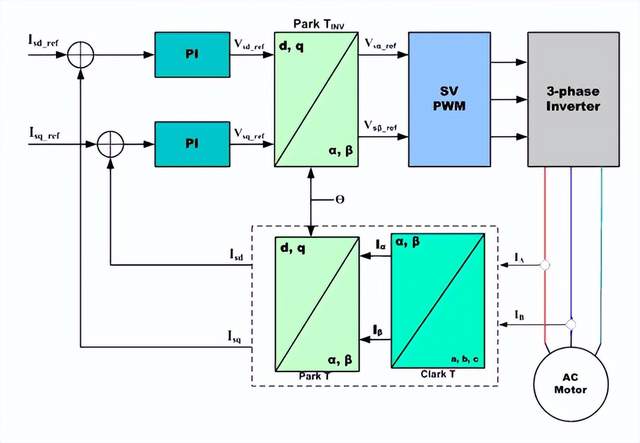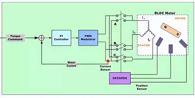 无刷电机属于自换流型(自我方向转换),因此控制起来更加复杂。 BLDC电机控制要求了解电机进行整流转向的转子位置和机制。对于闭环速度控制,有两个附加要求,即对于转子速度/或电机电流以及PWM信号进行测量,以控制电机速度功率。 BLDC电机可以根据应用要求采用边排列或中心排列PWM信号。大多数应用仅要求速度变化操作,将采用6个独立的边排列PWM信号。这就提供了最高的分辨率。如果应用要求服务器定位、能耗制动或动力倒转,推荐使用补充的中心排列PWM信号。 为了感应转子位置,BLDC电机采用霍尔效应传感器来提供绝对定位感应。这就导致了更多线的使用和更高的成本。无传感器BLDC控制省去了对于霍尔传感器的需要,而是采用电机的反电动势(电动势)来预测转子位置。无传感器控制对于像风扇和泵这样的低成本变速应用至关重要。在采有BLDC电机时,冰箱和空调压缩机也需要无传感器控制。 空载时间的插入和补充 大多数BLDC电机不需要互补的PWM、空载时间插入或空载时间补偿。可能会要求这些特性的BLDC应用仅为高性能BLDC伺服电动机、正弦波激励式BLDC电机、无刷AC、或PC同步电机。 控制算法 许多不同的控制算法都被用以提供对于BLDC电机的控制。典型地,将功率晶体管用作线性稳压器来控制电机电压。当驱动高功率电机时,这种方法并不实用。高功率电机必须采用PWM控制,并要求一个微控制器来提供起动和控制功能。 控制算法必须提供下列三项功能: 用于控制电机速度的PWM电压 用于对电机进整流换向的机制 利用反电动势或霍尔传感器来预测转子位置的方法 脉冲宽度调制仅用于将可变电压应用到电机绕组。有效电压与PWM占空度成正比。当得到适当的整流换向时,BLDC的扭矩速度特性与以下直流电机相同。可以用可变电压来控制电机的速度和可变转矩。 功率晶体管的换向实现了定子中的适当绕组,可根据转子位置生成最佳的转矩。在一个BLDC电机中,MCU必须知道转子的位置并能够在恰当的时间进行整流换向。 BLDC电机的梯形整流换向 对于直流无刷电机的最简单的方法之一是采用所谓的梯形整流换向。 图1:用于BLDC电机的梯形控制器的简化框图 在这个原理图中,每一次要通过一对电机终端来控制电流,而第三个电机终端总是与电源电子性断开。 嵌入大电机中的三种霍尔器件用于提供数字信号,它们在60度的扇形区内测量转子位置,并在电机控制器上提供这些信息。由于每次两个绕组上的电流量相等,而第三个绕组上的电流为零,这种方法仅能产生具有六个方向共中之一的电流空间矢量。随着电机的转向,电机终端的电流在每转60度时,电开关一次(整流换向),因此电流空间矢量总是在90度相移的最接近30度的位置。 图2:梯形控制:驱动波形和整流处的转矩 因此每个绕组的电流波型为梯形,从零开始到正电流再到零然后再到负电流。 这就产生了电流空间矢量,当它随着转子的旋转在6个不同的方向上进行步升时,它将接近平衡旋转。 在像空调和冰箱这样的电机应用中,采用霍尔传感器并不是一个不变的选择。在非联绕组中感应的反电动势传感器可以用来取得相同的结果。 这种梯形驱动系统因其控制电路的简易性而非常普通,但是它们在整流过程中却要遭遇转矩纹波问题。 BLDC电机的正弦整流换向 梯形整流换向还不足以为提供平衡、精准的无刷直流电机控制。这主要是因为在一个三相无刷电机(带有一个正统波反电动势)中所产生的转矩由下列等式来定义: 转轴转矩= Kt [IRSin(o) + ISSin(o+120) +ITSin(o+240)] 其中: o为转轴的电角度 Kt为电机的转矩常数 IR, IS和IT为相位电流 如果相位电流是正弦的:IR = I0Sino; IS = I0Sin (+120o); IT = I0Sin (+240o) 将得到:转轴转矩= 1.5I0*Kt(一个独立于转轴角度的常数) 正弦整流换向无刷电机控制器努力驱动三个电机绕组,其三路电流随着电机转动而平稳的进行正弦变化。选择这些电流的相关相位,这样它们将会产生平稳的转子电流空间矢量,方向是与转子正交的方向,并具有不变量。这就消除了与北形转向相关的转矩纹波和转向脉冲。 为了随着电机的旋转,生成电机电流的平稳的正弦波调制,就要求对于转子位置有一个精确有测量。霍尔器件仅提供了对于转子位置的粗略计算,还不足以达到目的要求。基于这个原因,就要求从编码器或相似器件发出角反馈。 图3:BLDC电机正弦波控制器的简化框图 由于绕组电流必须结合产生一个平稳的常量转子电流空间矢量,而且定子绕组的每个定位相距120度角,因此每个线组的电流必须是正弦的而且相移为120度。采用编码器中的位置信息来对两个正弦波进行合成,两个间的相移为120度。然后,将这些信号乘以转矩命令,因此正弦波的振幅与所需要的转矩成正比。结果,两个正弦波电流命令得到恰当的定相,从而在正交方向产生转动定子电流空间矢量。 正弦电流命令信号输出一对在两个适当的电机绕组中调制电流的P-I控制器。第三个转子绕组中的电流是受控绕组电流的负和,因此不能被分别控制。每个P-I控制器的输出被送到一个PWM调制器,然后送到输出桥和两个电机终端。应用到第三个电机终端的电压源于应用到前两个线组的信号的负数和,适当用于分别间隔120度的三个正弦电压。 结果,实际输出电流波型精确的跟踪正弦电流命令信号,所得电流空间矢量平稳转动,在量上得以稳定并以所需的方