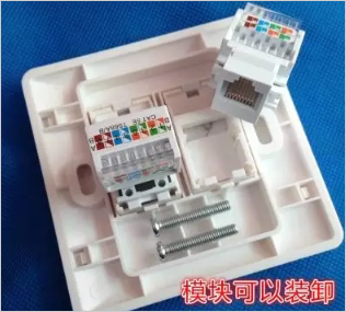 水晶头+护套爪子=完美 二、网络模块 网络模块那又是什么呢?我相信每个人家里都有,但是就是没有自己动手装过,这个还是跟我们息息相关的。每个模块上都会有提示A/B类线的颜色对应排序方法,将线依次卡进去就行了,另外一端只需要做一个B类的水晶头插在交换机上就行了。
