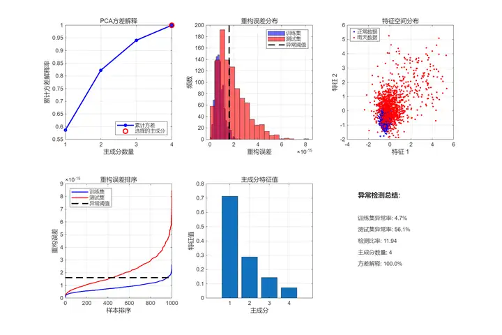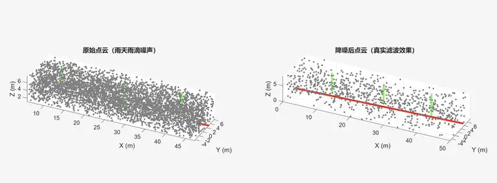 代码运行效果:左图能看到很多散乱的小点点(雨滴反射的噪声),右图噪声基本消失,路边护栏、路灯的轮廓清晰可见。我当时把这张图发给硬件同事,他们才认可数据预处理的价值。 步骤 2:训练PCA —— 让模型学 “正常点云” 的特征 异常检测的核心是让模型先理解 “正常”,再识别 “异常”。这里只用正常点云数据训练PCA: matlab