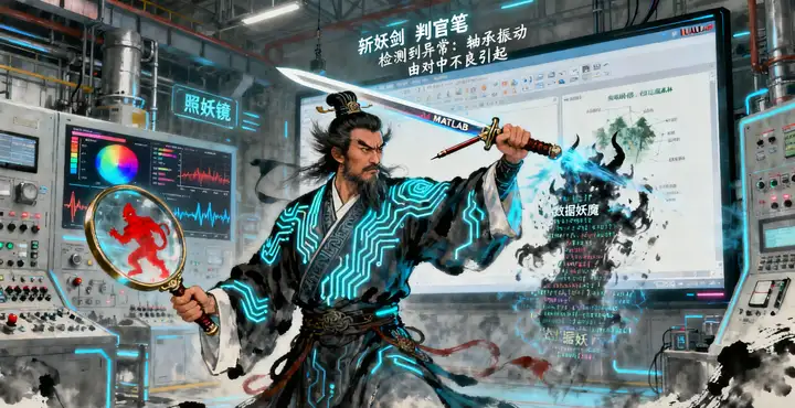 不管是振动信号波形、模型训练曲线,还是异常检测结果,拖两行代码就能出图,尤其是动态 GIF,开会时给领导看训练过程,比光说 “准确率 98%” 清楚多了。 二、打造AI异常检测的“黑神话·钟馗” 游戏科学的《黑神话:悟空》里,钟馗那双看透妖邪的锐利眼睛、出手即中的强悍实力,让人过目难忘。放到工业智能运维场景中,我们恰好需要这样的 “现代钟馗”—— 在海量工业数据里精准揪出异常苗头,稳稳守住设备的安全运行。 1.何谓“AI钟馗”?——从神话角色到工业守护神 神话中的钟馗,以其明察秋毫的洞察力和精准的捉妖能力闻名。千般幻象瞒不过他,只要揪出妖邪真身,必能一击制敌。这种能力,正是现代工业异常检测所追求的终极目标。