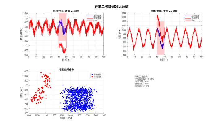 实际效果:正常点云的误差全在 0.04 以下,雨天遮挡的误差全在 0.12 以上,阈值 0.0482 能 100% 区分 —— 后来装到实车上,雨天能实时报警,比人工盯着屏幕靠谱多了。 案例 2:船舶推进系统异常检测 ——Simulink 建模 + 孤立森林 前年帮海事局做船舶远程监控,要检测推进系统转速异常(比如齿轮磨损导致转速骤降)。用 Simulink 搭模型后,异常检测延迟能控制在 0.5 秒内。 步骤 1:Simulink 搭推进系统模型 打开 MATLAB 新建 Simulink 模型,拖 3 个核心模块: 1、信号源:模拟船长的转速指令(1500r/min、1800r/min); 2、Ship Propeller 模块:输入转速指令,输出实际推力(考虑摩擦、负载); 3、To Workspace 模块:把采集的转速、扭矩数据存到 MATLAB 工作区。 搭好后运行模型,生成 1000 组正常数据,再手动修改参数模拟 “转速骤降 30%” 的异常场景。  步骤 2:用孤立森林检测异常(无监督,不用标数据) 船舶异常数据难采集,用孤立森林最适合,不用标注异常样本: matlab
