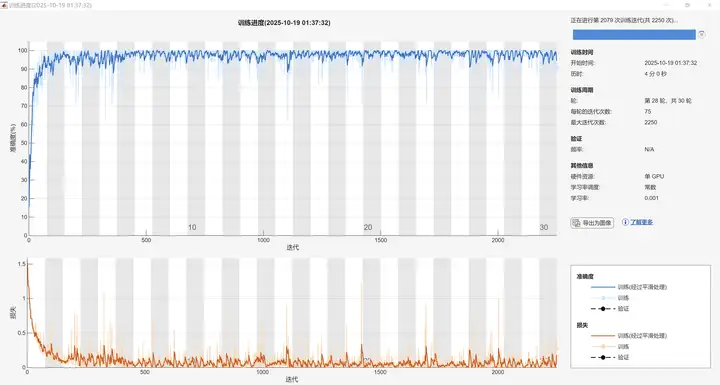 CNN 训练:  我当时发现第 35 轮后准确率不再提升,提前停了训练,避免过拟合。 步骤 3:检测效果与 LLM 解释 用测试数据验证,LLM 能说清 “为什么判定为异常”: matlab
