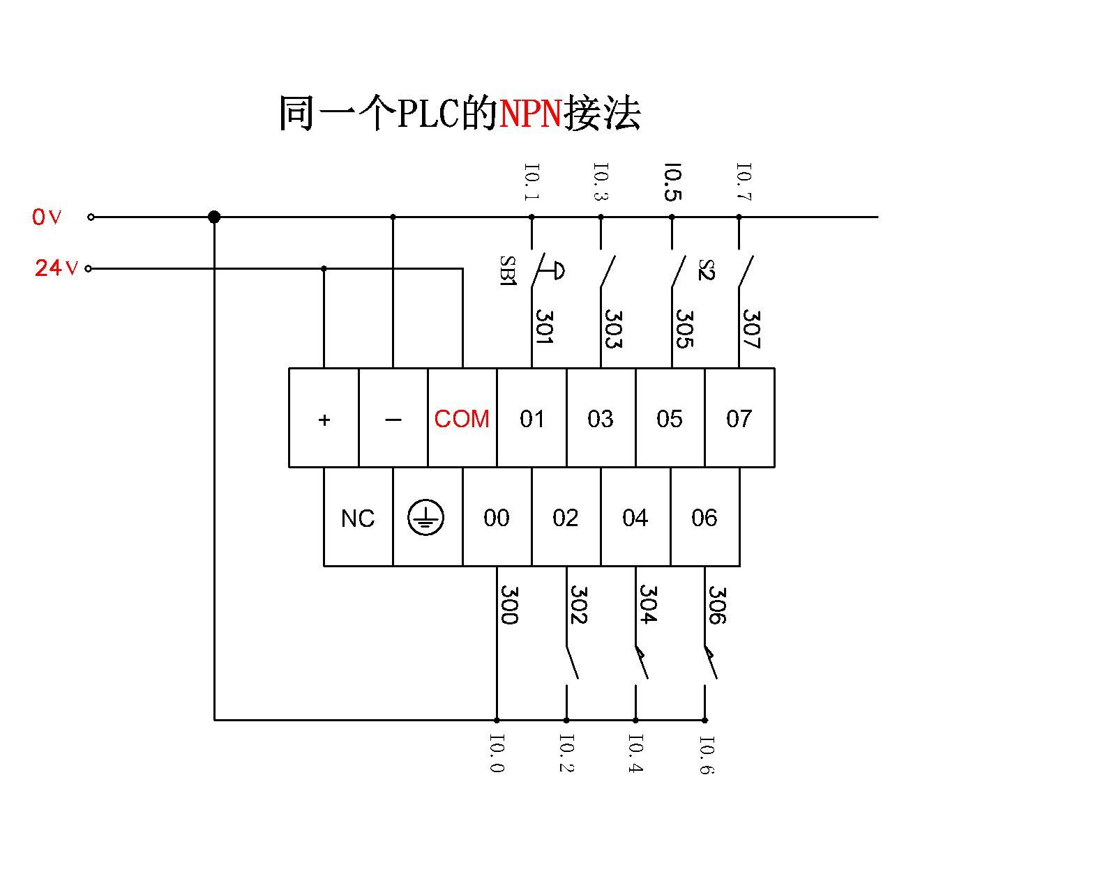 在工业里,很多人搞不懂NPN传感器和PNP传感器的区别,或者即使掌握了这两者的区别,也不知道如何应用。 PNP传感器,高电平有效 NPN传感器又叫“漏型输入”,电流是从端子里流进去的,就是低电平有效。 NPN传感器,低电平有效 在一些工厂里,PLC有很多种,有按NPN接的,有按PNP接的,一个公司一个习惯;而现场有好多传感器,比如接近开关和安全光栅等也分为PNP型和NPN型的,所以很多电工一看到传感器上的PNP和NPN就发懵。在这里,我为您从实际应用的角度分析PNP型和NPN型的区别。 1、对于电气工程师而言,在选型的时候,一般是根据设备的生产工艺来选择合适的PLC(客户要求除外,客户是上帝)来满足和实现动作要求。 2、当你PLC为PNP型时,那么你的输入端的输入信号必需为高电平,在电气上通常就是P24,那么输入端的公共端就是低电平(N24)。那么源型PLC就是电流从公共端流出,反之。 3、当你PLC为NPN型时,那么你的输入端的输入信号必需为低电平,在电气上通常就是N24,那么输入端的公共端就是高电平(P24)。那么漏型PLC就是电流从公共端流入,反之。 4、选型好PLC后,一定要注意输入端的外部传感器输出的电平 。如光电开关有也有PNP与NPN之分。选型时切记细心。 5、不同的PLC接法不一样,如信捷PLC,公共端跟内部电源-相连,外部只在跟电源- 相连,PLC就有输入信号。 原理:使COM端与输入端口相连。 6、西门子PLC,一般都是源型(PNP),COM端接电源﹣。 PLC选择用PNP,那么光电开关也得选用PNP,PNP型光电开关输出的是高电平,所以COM端接电源 - 才能形成回路。 7、而日系的三菱PLC,COM端是独立的,可根据外部输入信号的极性来确定COM端接电源+还是电源- COM端接电源+,那么输入端就接电源- COM端接电源-,那么输入端就接电源+ 同一个PLC的PNP接法,高电平输入有效 同一个PLC的NPN接法,低电平输入有效 而为什么工厂的PLC会有PNP接法和NPN接法的区别呢? 其原因是这两种接法各有各的好处。 PNP接法;一般欧美的外企都习惯这种接法,优点是在发生故障时易于判断故障,因为24V比0V更明显,而且工厂的电气环境比较恶劣,各种电磁场相互作用,24V也比0V的抗干扰能力强很多。 NPN接法;一般日本和一些国内的厂家愿意使用这种接法,因为传递给现场的电源是0V,在现场出现电缆损坏的时候,0V的电缆碰到了地线上不会导致上一级开关电源的跳闸或者损坏,因此适应性上更强一点,可以更好的保护系统。 那么问题来了,PNP接法的PLC可以使用NPN的传感器吗?或者反过来。 答案是不一定,你需要区分是什么功能的传感器,比如说普通功能的接近开关就可以通过用继电器来转换。 那么我给您做了一幅图,帮助您在可能的情况下使用。 PNP接法的PLC使用两种传感器 NPN接法的PLC使用两种传感器 但是利用继电器转换有一个缺点,那就是即时性不好,因为继电器吸合需要时间,如果这个传感器即时性要求特别高,如果需要精确定位的话就不可以了,或者编码器类脉冲的因为时效性也不可以,如果遇到这种情况还是乖乖去找适合的传感器吧! |