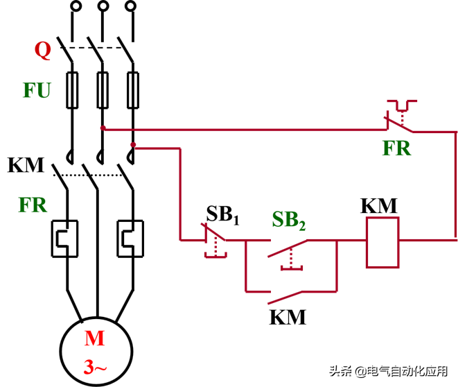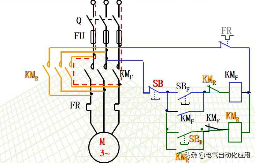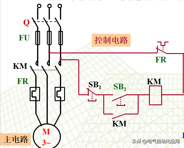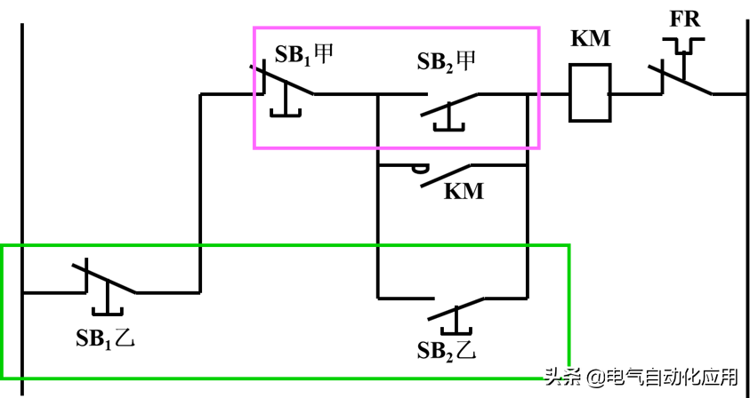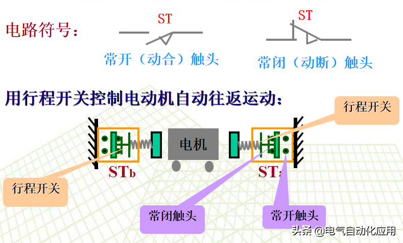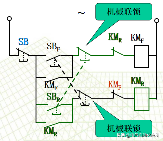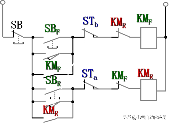 一、直接起动的过程 和上闸刀开关Q,按下SB2,接触器线圈KM通电,其主触头和辅助触头同时吸合,电动机 运行。按下SB1,控制电路断电,主触头和辅助触头同时断开,电动机 停车。 KM的辅助触点,起自锁作用。去掉KM辅助触点, 实现点动控制。 2、保护电机的必要技术手段 短路保护:用熔断器 FU实现短路保护。当电动机内部发生短路时,熔断器流过很大的短路电流,熔丝迅速熔断,电动机就自动停转。 零压保护:当电网电压下降很多或停电时,交流接触器线圈中的电流也要减小或者消失,使主触头断开,电动机停转。 过载保护:常采用热继电器FR保护。 当电动机过载时,热元件发热使双金属片受热膨胀弯曲,使控制电路中热继电器的常闭触头断开,使接触器线圈断电,起到过载保护作用。 例:两地控制一台电动机的控制线路 甲、乙的起动按钮并联;停止按钮串联。 3 鼠笼式电动机正反转的控制线路 在生产上不仅需要控制电动机的起动和停车,有时候还要求电动机能向正、反两个方向转动,例如应用异步电动机使起重机提升与下降。将电动机接到电源的任意两根线对调一下,即可使电动机反转。 需要用两个接触器来实现这一要求。当正转接触器工作时,电动机正转;当反转接触器工作时,将电动机接到电源的任意两根联线对调一下,电动机反转。 正反转的控制线路 注意事项; 正转、反转接触器不能同时动作 采取的措施是:在正转接触器的控制电路中,串接了反转接触器的一个常闭触点KMR。 在反转接触器的控制电路中,串接了正转接触器的一个常闭触点KMF。 接触器KMF和KMR的这两个常闭辅助触头在控制电路中所起的作用好比是两把锁门用的锁,当一个接触器的线圈带电时,就把另一个接触器的控制电路锁住,所以叫做联锁作用,这两个常闭触头就叫做联锁触头。 在同一时间内,两个接触器只允许一个通电工作的控制作用,称为“联锁”。 利用接触器的触点实现联锁控制称电气联锁。 电气联锁的缺点:正转过程中要求反转,必须先按停止按钮,然后才能按反转按钮。 解决措施:在控制电路中加入机械联锁。 利用复合按钮的触点实现联锁控制称机械联锁。 4 行程控制 行程控制:控制某些机械的行程,当运动部件到达一定行程位置时利用行程开关进行控制。 例如:提升机要求达到一定的高度自动停止;一些机床要求刀具或工件自动往返。 行程开关的工作原理:行程开关是由位置来决定其动作的开关元件,它的结构基本与按钮一样,一般只具有一个常开触点和一个常闭触点。 其结构与按钮类似,但其动作要由机械撞击,其结构图为: 自动往返运动的控制电路: 按SBF时,KMF通电,电机正转,工作台前进,到达预定位置,挡块1撞击STb,KMF断电 停止正转,KMR通电,电机反转(工作台后退)。 [groupid=97]电工电气学习[/groupid] |