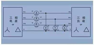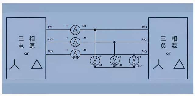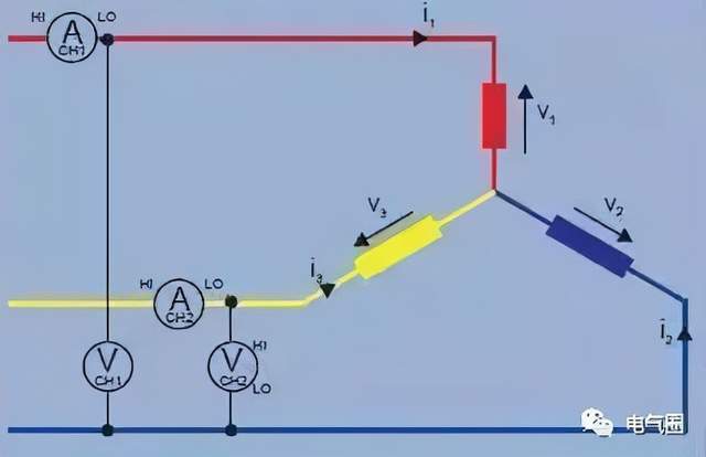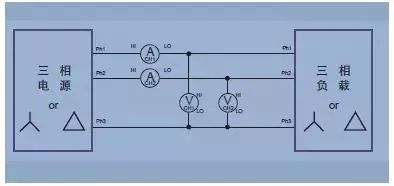 三相系统 三相电由频率相同、幅度类似的三个AC电压组成。每个ac电压“相位”与另一个ac电压相隔120°(图1)。这可以通过图形方式,使用波形和矢量图(图2)进行表示。 图1. 三相电压波形 图2. 三相电压矢量 使用三相系统的原因有两个: 1. 可以使用三个矢量间隔的电压,在马达中产生旋转磁场。从而可以在不需要额外绕组的情况下启动马达。 2. 三相系统可以连接到负载上,要求的铜缆连接数量(传输损耗)是其它方式的一半。 我们看看三个单相系统,每个系统为一个负载提供100W的功率(图3)。总负载是3 x 100W = 300W.为提供电力,1安培电流流经6根线,因此有6个单位的损耗。也可以把三个电源连接到一个公共回程上,如(图4)所示。当每个相位中的负载电流相同时,负载被认为是均衡的。在负载均衡、且三个电流相位彼此位移120°的情况下,任何时点上的电流之和都为零,回程线路中没有电流。 图3. 三个单相电源 - 6个单位损耗 图4. 三相电源,均衡负载 - 3个单位损耗 Y形接法或星形接法 在三相120°系统中,要求3根线传送功率,而在其它方式下则要求6根线。要求的铜缆数量减少了一半,导线传输损耗也将减半。 拥有公共连接的三相系统通常如(图5)的示意图所示,称为“Y形或星形”接法。 公共点称为中性点。为安全起见,这个点通常在电源上接地。在实践中,负载并不是完美均衡的,要使用第四条“中性”线传送得到的电流。如果本地法规和标准允许,中性导体可能会比三条主导体小得多。 图5. Y形接法或星形接法 - 三相四线 Y形接法或星形接法 上面讨论的三个单相电源也可以串联起来。在任何时点上,三个120°相移电压之和都是零。如果和为零,那么两个端点都处在相同的电位,可以联接在一起。这种接法如(图7)中的示意图所示,使用希腊字母Δ表示,称为三角形接法。 图6. 任意时间的瞬时电压之和为零 图7. 三角形接法 - 三相三线 Y形接法和三角形接法比较 Y形接法用来为家庭和办公中使用的日常单相设备供电。单相负载连接到线路和中性线之间Y形的一条腿上。每个相位的总负载尽可能多地共享,以便为主三相电源提供均衡负载。 Y形接法还可以为更高电压上更高的功率负载提供单相或三相电。单相电压是相位到中性电压。另外还提供较高相间电压,如(图8)中的黑色矢量所示。 图8. V phase-phase = √3 x V phase-neutral 三角形接法最常用的情况是为功率较高的三相工业负载供电。然而,通过沿着变压器线圈进行连接或“分接”,可以从三相三角形电源中获得不同的电压组合。例如,在美国,240V三角形系统可以有分相或中心分接线圈,提供两个120V电源(图9)。为安全起见,中心分接点可以在变压器上接地。在中心分接点和三角形接法的第三条“高脚”之间,还提供了208V电压。 图9. 三角形接法,采用“分相”或“中心分接”线圈 功率测量 在交流系统中,功率使用功率表测量。现代数字采样功率表,把多个电压和电流的瞬时样点乘在一起,计算瞬时功率,然后取一个周期中瞬时功率的平均值,表示有功功率。功率表将在广泛的波形、频率和功率因数范围上,准确测量有功功率、视在功率、无功负载、功率因数、谐波等等。为使功率分析仪提供良好的结果,必须能够正确识别布线配置,正确连接功率分析仪。 单相功率表连接 只要求一个功率表,如(图10)所示。系统与功率表电压端子和电流端子的连接简单明了。功率表的电压端子透过负载并连,电流通过与负载串联的电流端子输入。 图10. 单相双线和DC测量 单相三相连接 在这个系统中,如图11所示,从一个中心分接的变压器线圈中产生电压,所有电压都同相。这在北美住宅应用中十分常见,其中提供了一个240 V电源和两个120V电源,在每条腿线上可能有不同的负载。为测量总功率和其它数量,应如(图11)所示连接两个功率表。 图11.单相三线 布朗德尔定理:要求的功率表数量,在单相系统中,只有两根线。功率使用一个功率表测量。 在三线系统中,要求两个功率表,如(图12)所示。 一般来说,要求的功率表数量 = 线数-1 图12. 三线Y形系统 验证三相Y形系统 功率表测量的瞬时功率是瞬时电压和电流样点之积。 功率表1读数 = i1 (v1 - v3) 功率表2读数 = i2 (v2 - v3) 读数之和W1 + W2 = i1v1 - i1v3 + i2v2 - i2v3 = i1v1 + i2v2 - (i1 + i2) v3 (根据基尔霍夫定律,i1 + i2 + i3 = 0, so i1 + i2 = -i3) 2个读数W1 + W2 = i1v1 + i2v2 + i3v3 = 总瞬时功率。 三相三线接法 - 两个功率表方法 在有三根线时,要求两个功率表测量总功率。根据图所示方法连接两相到功率表的电压端子。 图13. 三相三线、两个功率表方法 三相三线接法 - 三个功率表方法 如前所述,尽管测量三线系统中的总功率只要求两个功率表,但有时可以方便地使用三个功率表。在如图所示的接法中,通过把所有三个功率表的电压低端子连接在一起,创建一个假中性线。 图14. 三相三线(三个功率表方法,把分析仪设置成三相四线模式) 三线三个功率表的接法的优势在于,它指明每一个相的功率(这在两个功率表的接法中是不可能的)以及相到中线电压。 三相四线接法 测量四线系统中的总功率要求三个功率表。测得的电压是真实的相电压。通过使用矢量数学运算,可以从相电压的幅度和相位中准确地计算出相间电压。现代电源分析仪也使用基尔霍尔定律,计算流过中线的电流。 图15. 三相四线(三个功率表方法) 配置测量设备 在线数