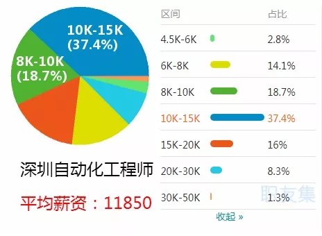 排名第三的是深圳 自动化工程师平均薪资是11850 10K-15K的占比达到了37.4%