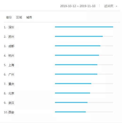 以下是近1个月来搜索“自动化工程师”前10的城市