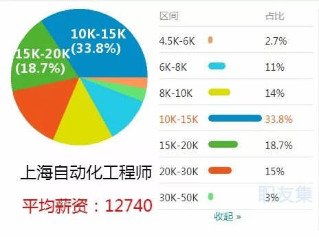 排名第二高的是上海 自动化工程师平均薪资是12740 10K-15K的占比达到了33.8%