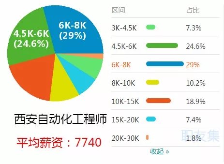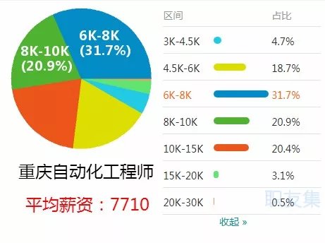 排名第九的是重庆 自动化工程师平均薪资是7710 6K-8K的占比最大,为31.7% 排名第十的是西安 自动化工程师平均薪资是7710 6K-8K的占比最大,为29%