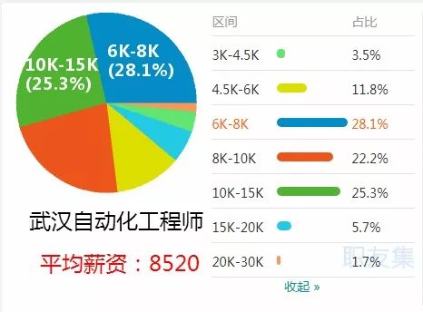 排名第八的是武汉 自动化工程师平均薪资是8520 6K-8K的占比最大,为28.1% 10K-15K的占比第二,为25.3%