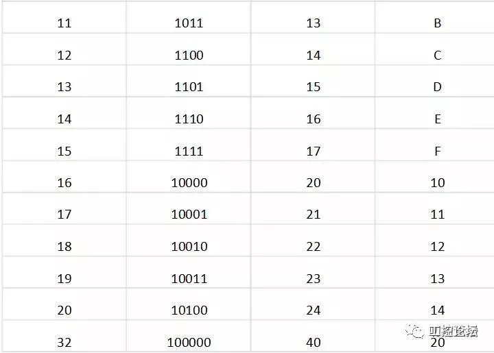 常用进位计数制: 1、十进制(Decimalnotation),有10个基数:0~~9,逢十进一; 2、二进制(Binarynotation),有2个基数:0~~1,逢二进一; 3、八进制(Octalnotation),有8个基数:0~~7,逢八进一; 4、十六进制数(Hexdecimalnotation),有16个基数:0~~9,A,B,C,D,E,F (A=10,B=11,C=12,D=13,E=14,F=15),逢十六进一。