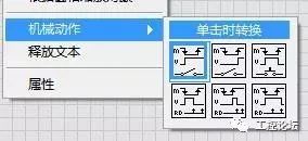 2、设置按钮的机械动作,根据需要选第一(单击时转换)或第二种(释放时转换)。