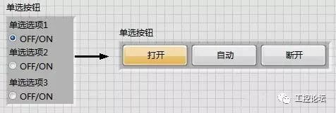 方式一:通过单选按钮来实现。将单选按钮中的单选项按钮替换为自己所需要的按钮型式