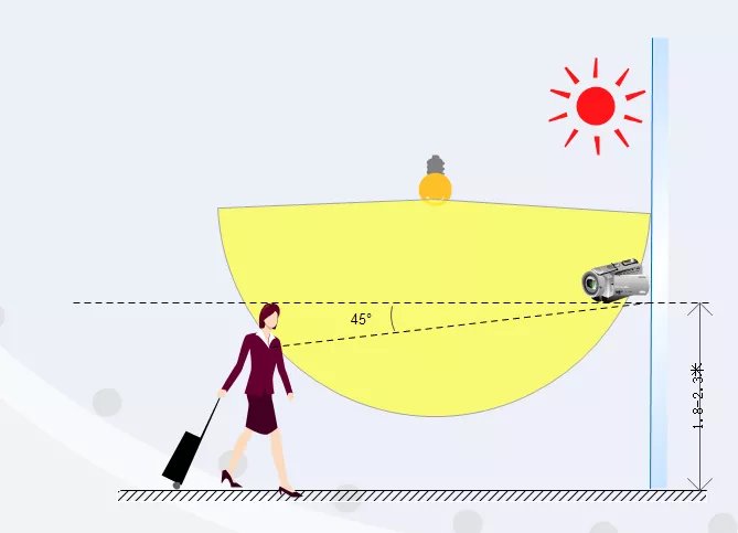 2 补光灯的安装 补光灯安装高度 补光灯安装高度没有准确标准,补光灯安装基本上要低于摄像机,安装在摄像机下方或者在摄像机左右端安装补光灯;也可以安装于与人脸平行位置;具体可根据现场摄像机情况来安装补光灯,在其基础上微调补光灯位置及补光灯亮度。补光灯安装倾斜角度 补光灯安装倾斜角度根据摄像机安装位置与人脸采集倾斜角来调整,因人员高度的不同,可根据大众话情况调整角度。补光灯安装环境 补光灯的安装环境,其实就是了解在什么样的情况下需要安装补光灯。 一是在没有光照或灯光情况下,此环境比较苛刻,出现的几率也比较少,在这样的环境下安装补光灯不如直接安装一些照明灯比较合理; 二在光照比较昏暗的情况下,安装补光灯可以让摄像机更好的采集、识别比对人脸; 三是摄像机安装位置既定,人脸背光的情况下,安装补光灯可以使采集到的人像不会因为背光使人像模糊、看不清等情况。  补光灯安装其他注意事项 补光灯安装过程中,需要考虑到过往人员的情绪,补光灯最好不要直射人员眼睛,光照强度不可太强,以免客户用手遮挡脸部,影响采集。