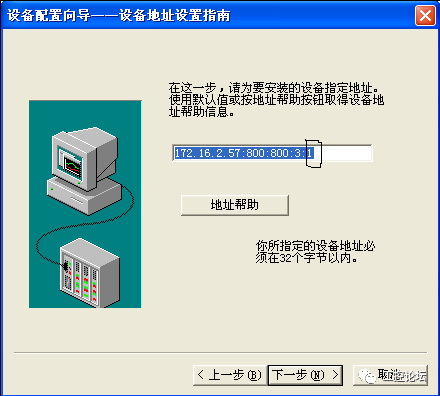 选择UDP通讯协议时三处红色框之处都要注意,第一处同样要选确认,理由同上,第二处和第三处没有确定的值,一般建议最好使用700以后的端口。这里要强调的是当我们选择设备时,设置设备地址时地址中的端口值要与此图一致,如下图