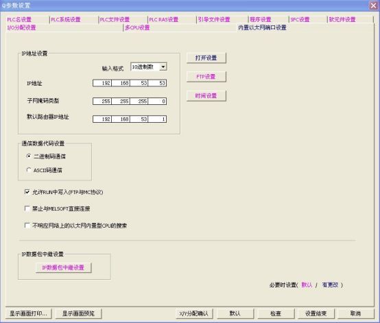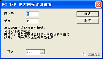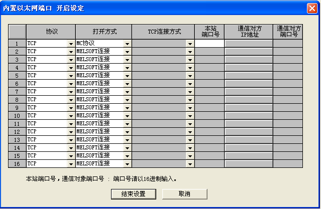 (5)设定内置以太网参数*如果选用TCP协议则打开方式务必选取“MC协议”