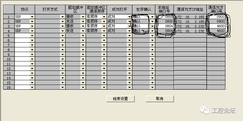 注意:整个网络的PC和PLC,aaa.bbb.ccc部分要相同,ddd和PLCport,ComputerPort部分不要重复