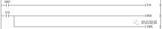 如图所示,当X001触点闭合时,S10线圈得电(即S10继电器状态为NO),S10常开触点闭合。状态继电器主要用在步进顺序程序中,未在步进程序中使用的状态继电器可以当成辅助继电器一样使用。
