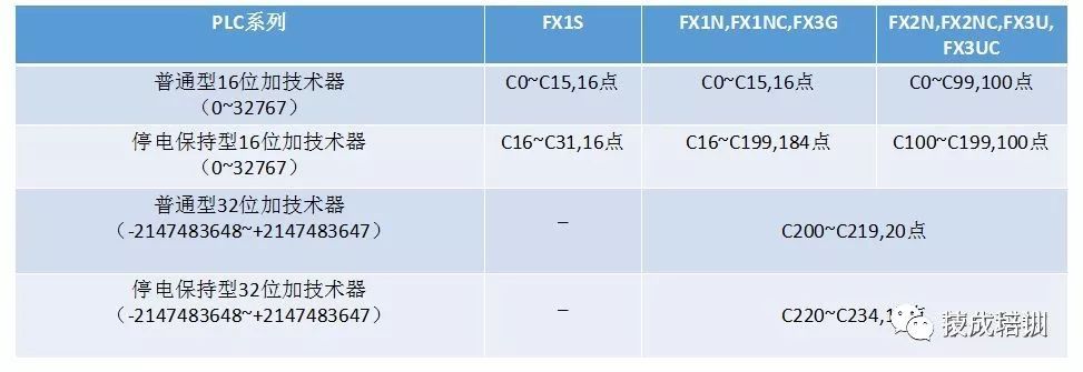 三菱FX系列PLC的数据寄存器点数如下表所示