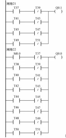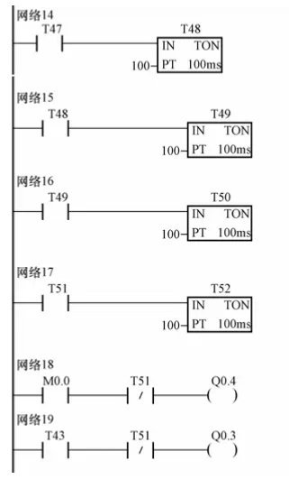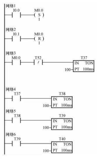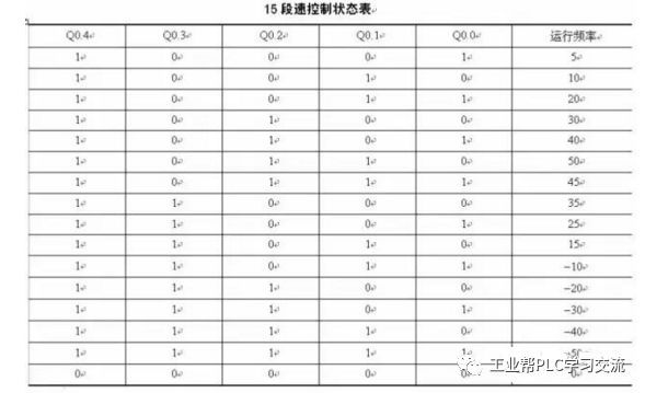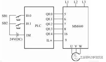I0.0,电动机运行,对应电动机运行按钮SB1; I0.1,电动机停止,对应电动机停止按钮SB2; Q0.0,固定频率设置,接MM440数字输入端子“5”; Q0.1,固定频率设置,接MM440数字输入端子“6”; Q0.2,固定频率设置,接MM440数字输入端子“7”; Q0.3,固定频率设置,接MM440数字输入端子“8”; Q0.4,电动机运行/停止控制,接MM440数字输入端子“16” PLC程序应包括以下控制: (1)当按下正转启动按钮SB1时,PLC的Q0.4应置位为ON,允许电动机运行。 (2)PLC输出接口状态、变频器输出频率、电动机转速变化 (3)当按下停止按钮SB2时,PLC的Q0.4应复位为OFF,电动机停止运行。