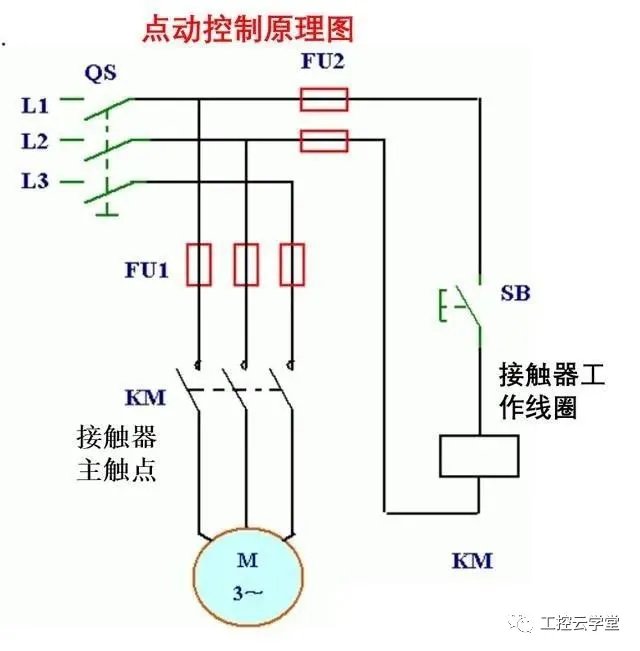 电路中经常使用的四种控制电路,掌握其控制方法及原理,是电工必备知识,下面结合实际电路分享。 点动控制点动控制又称为寸动控制,顾名思义就是按动按钮开关,电动机得电启动运转;当松开按钮开关后,电动机失电停止运转。点动控制是电路中最基基础的控制电路,广泛应用在电路中。