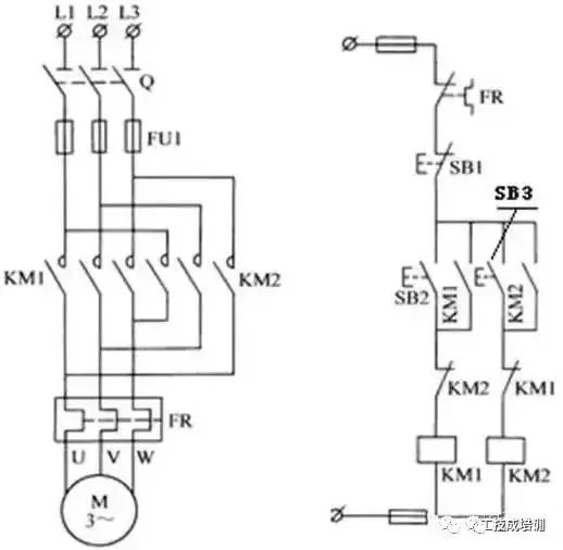 48、电动机“正—反—停”控制线路中,复合按钮已经起到了互锁作用,为什么还要用接触器的常闭触点进行联锁? 因为当接触器主触点被强烈的电弧“烧焊”在一起或者接触器机构失灵使衔铁卡死在吸合状态时,如果另一只接触器动作,就会造成电源短路。接触器常闭触点互相联锁时,能够避免这种情况下短路事故的发生。