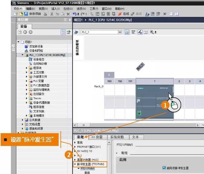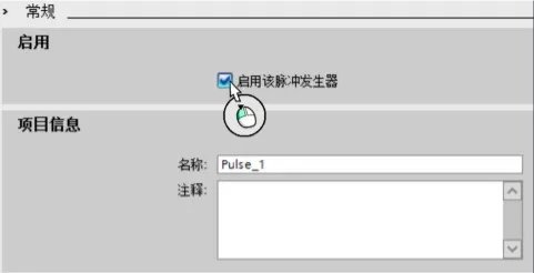 1. 进入CPU“常规”属性,设置“脉冲发生器”。如下图所示: