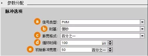 d. 循环时间:表示PWM脉冲的周期时间,Portal 软件中对“循环时间”限定的范围值:1~16777215。