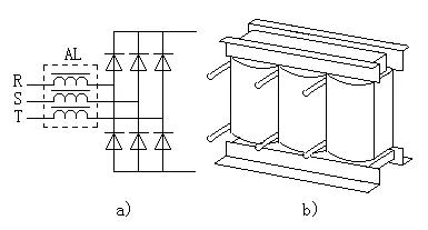 功率因数的改善: 为了改善功率因数或安装场所距大容量电源很近时,必须加直流电抗器和交流电抗器。除改善功率因数外,还有以下作用: