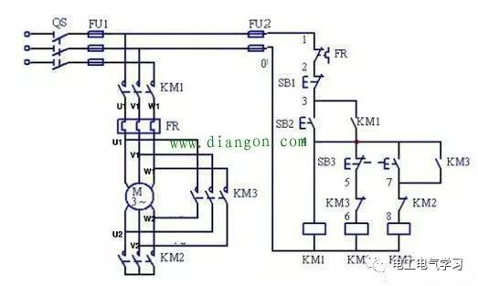 第一种:大家看当按下SB2按钮以后,KM1---KM2得电电机这时候星形运转大家看图中,当星形启动以后如果不按下SB3的三角形启动按钮,是不是星形会一直运转,当按下SB3这时候SB3常闭分断对KM2的电路,这时候KM3三角形启动,同时KM3常开自锁触点闭合,KM3常闭断开。电机全压运行