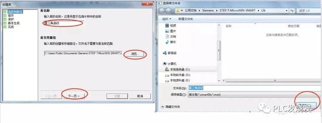 第二步:则会出现下图所示的对话框,可输入新建库的名称以及库的保存路径,一般默认存在STEP 7-MicroWIN SMART的Lib文件夹中即可。选择对用的存放路径后点击保存,然后点击下一页