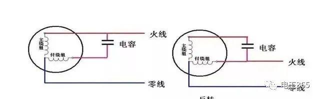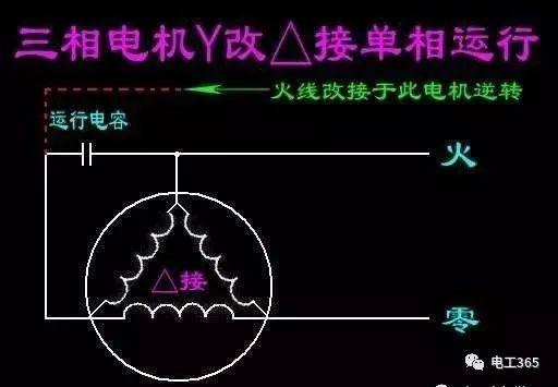 三相电机改单相输入的接线方法 1、改时三相绕组的连接方法不动,即原为星接的还为星接,原为角接的还为角接。原与三相电机相接的三个出线端中的任意两个分别与电源两端(L—火线,N—零线)相接,剩余一个先于电容器相接。 2、电容器的另一端与电源的一端相接,与火线相接还是与零线相接,要看需要的转向而定,不同的接法转向是不同的。上图中也分别展示了不同接法下的,实现电机正反转接法。