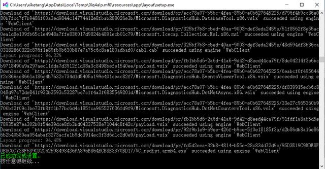 7、执行结果 最终D盘的vs2019_offline文件夹下就有了离线按照包了,直接双击setup就可以安装了。