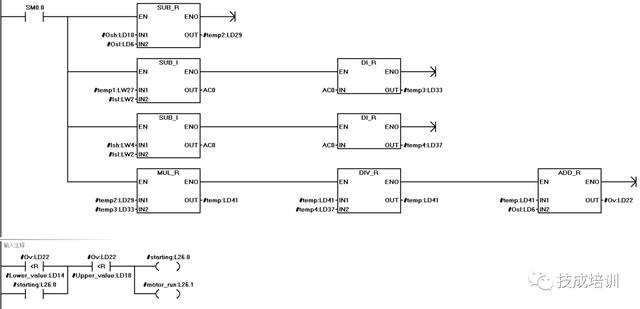 (3)根据计算公式的要求进行计算程序的编写,同时把不同的数据类型转换为相同的数据类型做运算,然后根据计算的采集值的大小与设定的上下限制做比较实现对电机的启停控制。