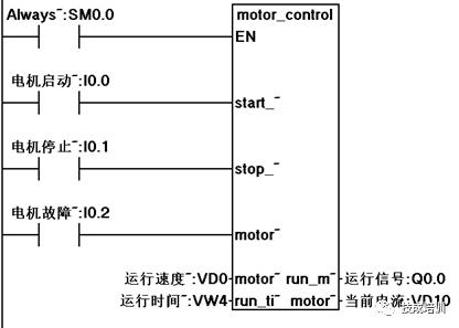 当控制要求相同或具有相同的算法时,(如对电机的控制,若需要对多台电机进行控制,且每台电机具有相同的控制方式)此时可考虑根据该控要求,编写一个功能块,然后重复调用该功能块,然后赋予不同的实参来实现该控制,如同所示: