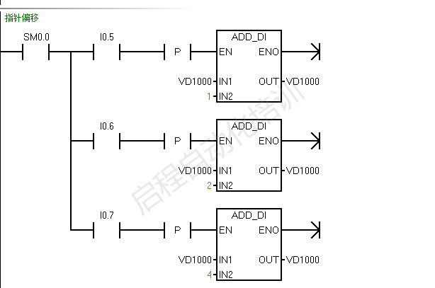 按字寻址时,偏移4即VD100由指向VD10地址转为VD1000→VD14 按字寻址时,偏移2即VD100由指向VW10地址转为VD1000→VW12 按字节寻址时,偏移1即VD100由指向VB10地址转为VD1000→VB11