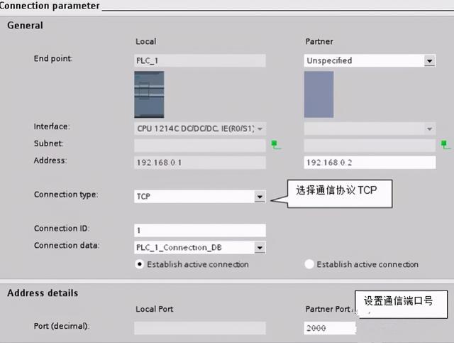 图12 S7-1200 的TCP连接参数的配置