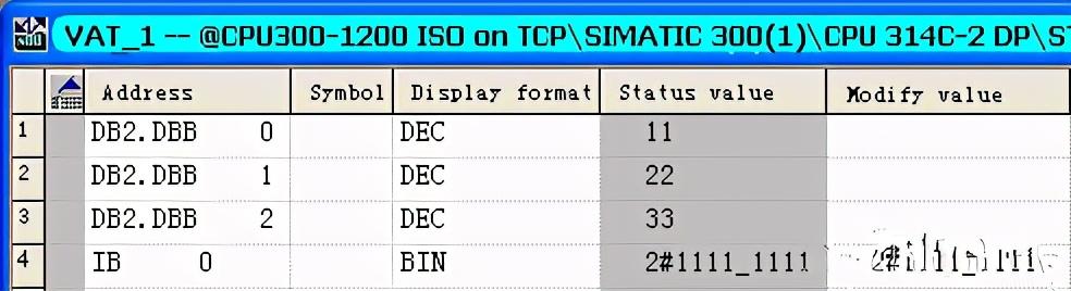在S7-1200 CPU中向DB3中写入数据:“11”、“22”、“33”,则在S7-300中的DB2块收到数据也为“11”、“22”、“33”。