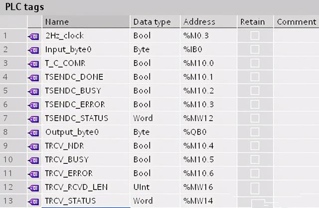 图1 创建所使用参数的符号表图PLC tag