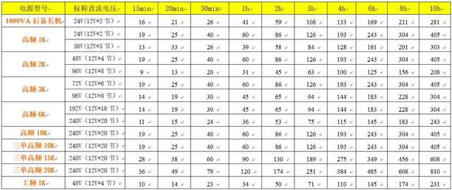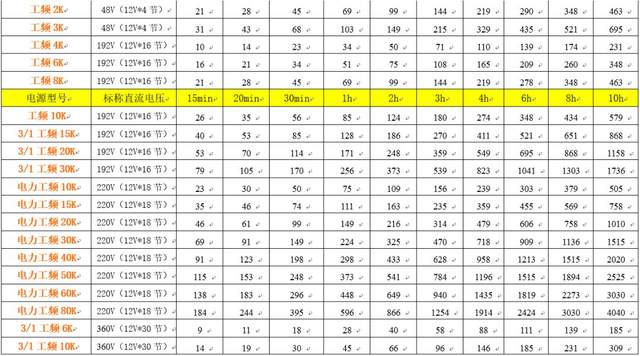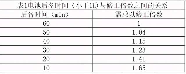 如果要求后备时间20min时: 则409/3=136Ah,还需乘以修正系数,见表1,136×1.41=192Ah,即可选12V、65Ah电池3组(32块/组)。 注意:实际后备时间超过20min(超出一点)。 其它情况,以此类推。