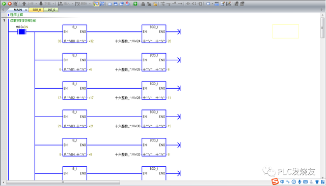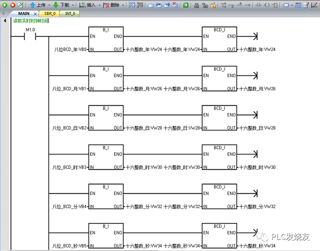第二步:(用字节转整数+BCD码转整数指令来读取实时时钟时间(B_I—BCD_I))。