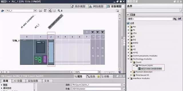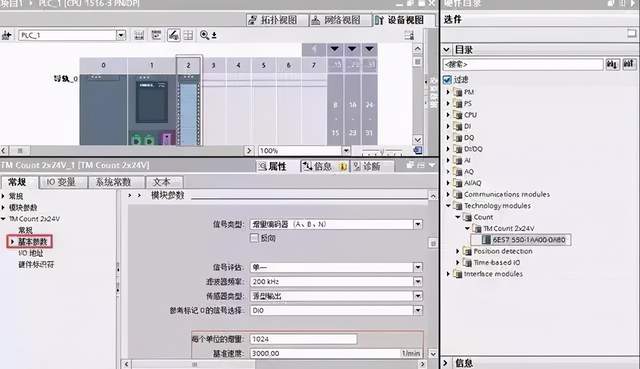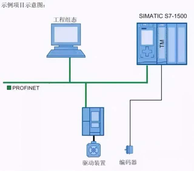 系统搭建示意图 本文中的实例项目使用 CPU1516-3PN/DP 通过 PN 通讯控制 G120 变频器,通过安装在电机后面的编码器连接到工艺模块 TM Count24V 作为位置反馈。