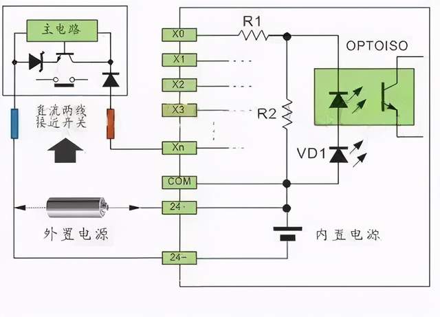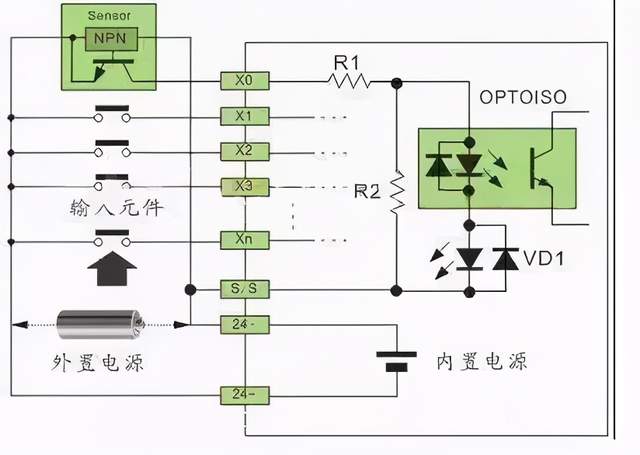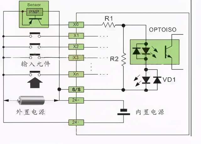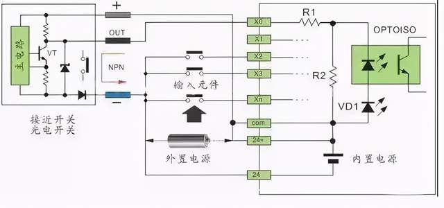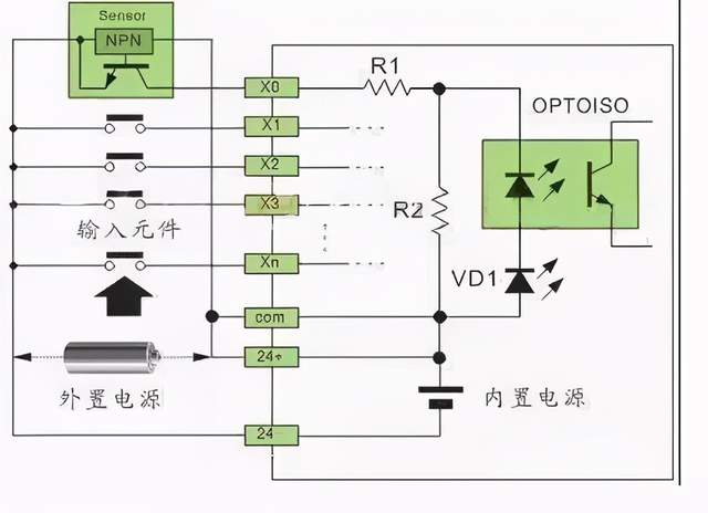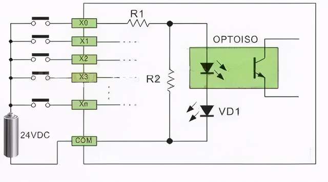 一、概述 PLC 的数字量输入接口并不复杂,PLC 为了提高抗干扰能力,输入接口都采用光电耦合器来隔离输入信号与内部处理电路的传输。因此,输入端的信号只是驱动光电耦合器的内部 LED 导通,被光电耦合器的光电管接收,即可使外部输入信号可靠传输。