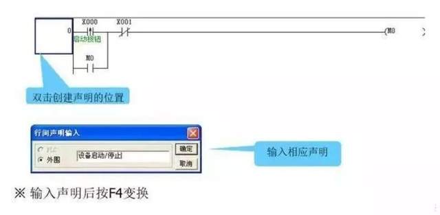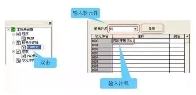2、添加注释和声明 创建软元件注释:通过列表进行输入操作
