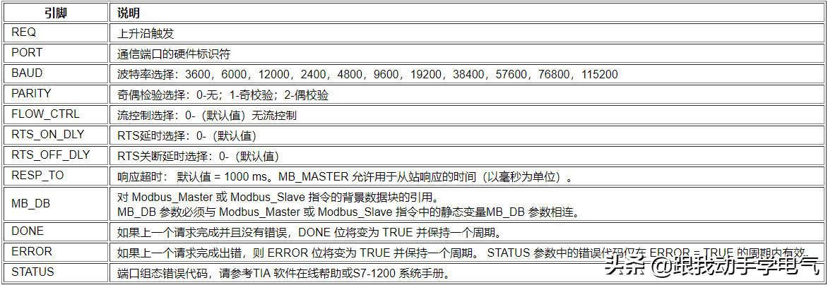 Modbus_Comm_Load指令各参数意义如下表1所示:  表1 MB_COMM_LOAD指令参数意义