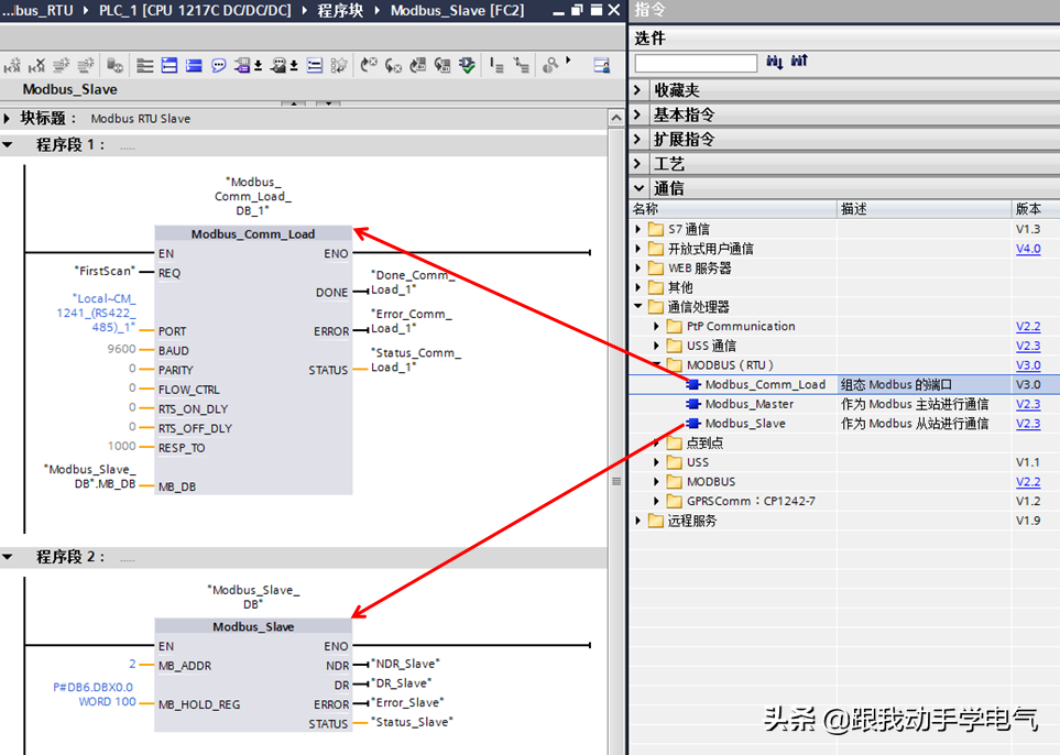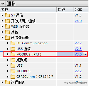 TIA V13 SP1版本软件中提供了2个版本的Modbus RTU指令:  图1. 两个版本Modbus RTU指令