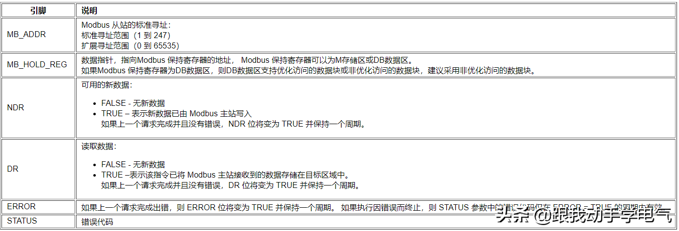 Modbus_Slave指令各参数意义如下表3所示:  表3 Modbus_Slave指令参数意义