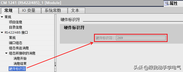 最后在“硬件标识符”里确认一下硬件标识符为269(该参数在程序编程中会被使用),如下图6.所示:  图6 硬件标识符