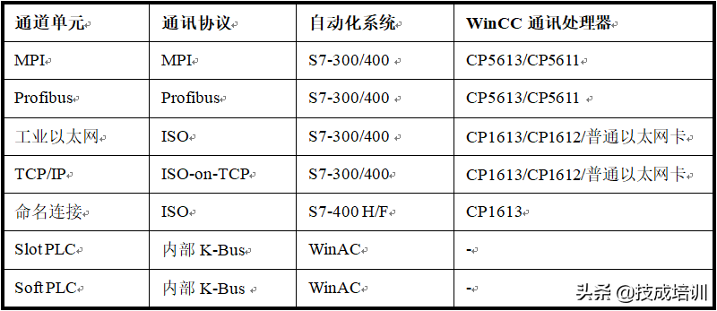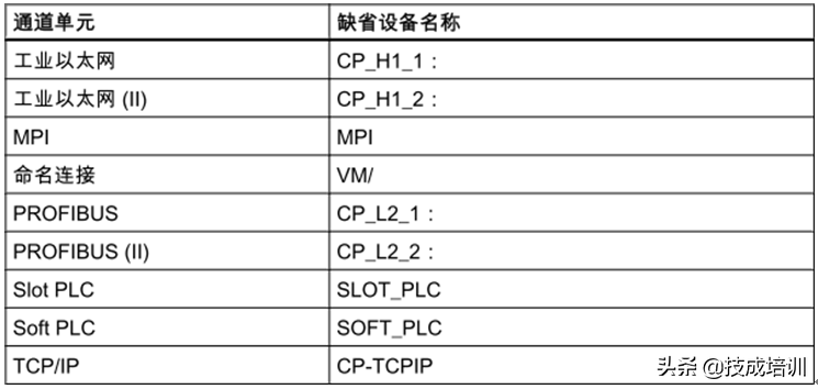 2. 通道单元:每个通道单元相当于与一个基础硬件驱动程序的接口,进而也相当于与PC中的一个通讯处理器的接口。因此,每个使用的通道单元必须分配到各自的通讯处理器。以SIMATIC S7 Protocol Suite为例,各通道单元的适用范围见表2-1。