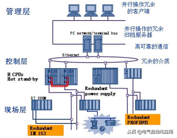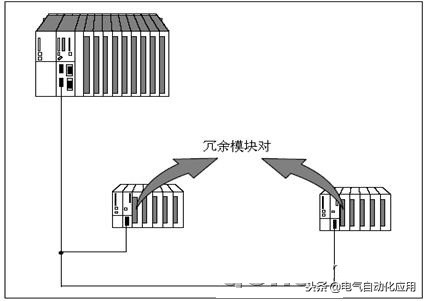 S7-400H 由通过光纤电缆同步的两个冗余组态子系统组成,这两个子系统构成了一个容错自动化系统,该系统基于“主动冗余”原理使用双通道(2选1)结构进行操作。 冗余系统架构如下图: